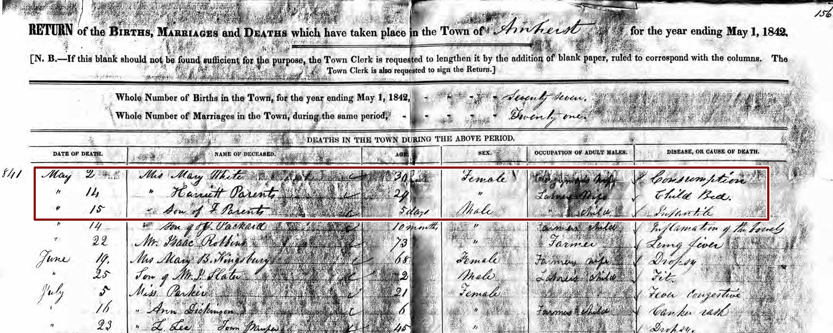Death Record of Harriett Parents