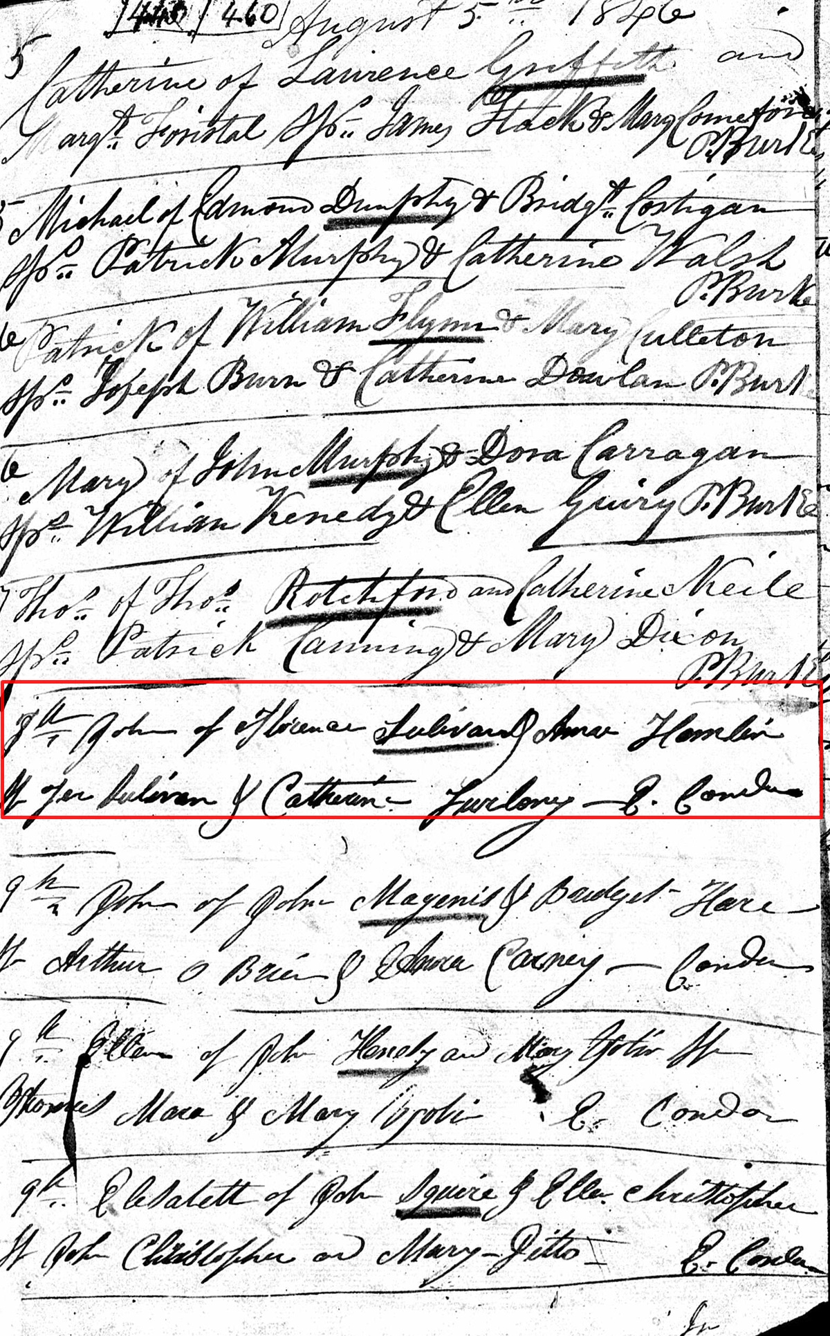 Marriage Record of Anne Hamlin and Florence Sulivan