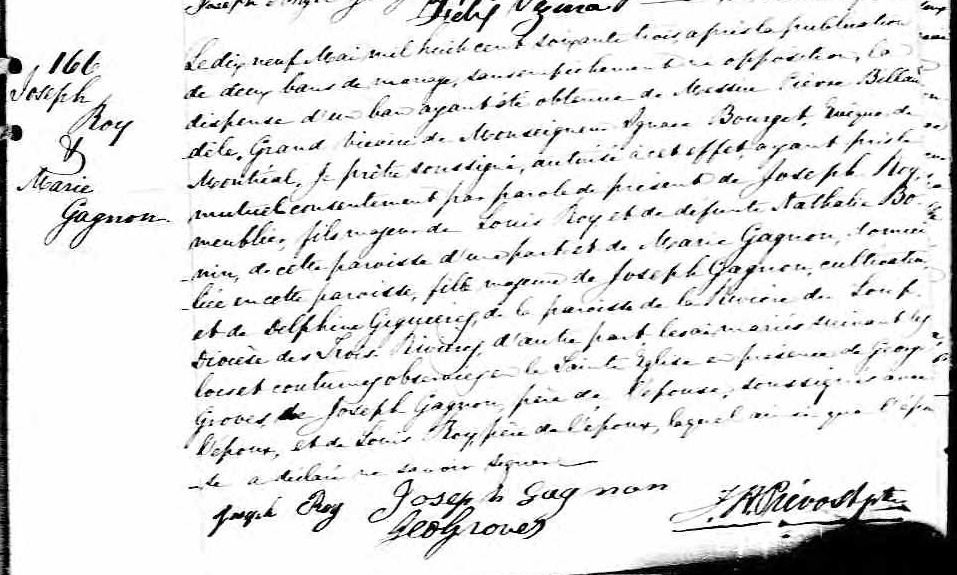 Marriage Record of Marie Gagnon and Joseph Roy