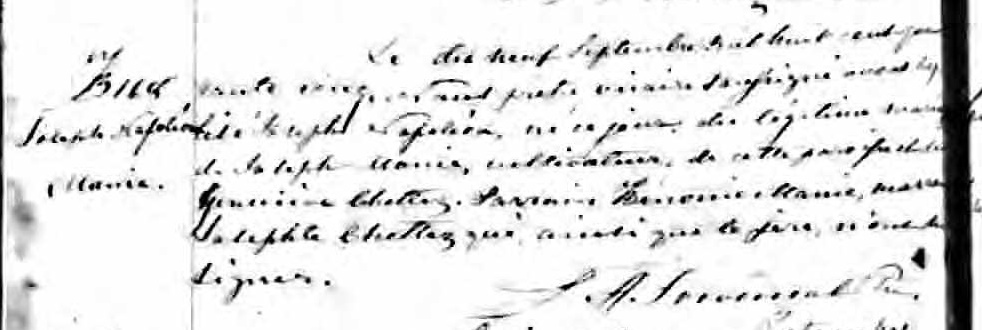 Christening Record of Josephe Napoleon Manie