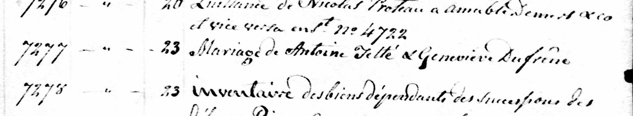 Record of Marriage Contract between Geneviève Dufresne and Antonie Jetté