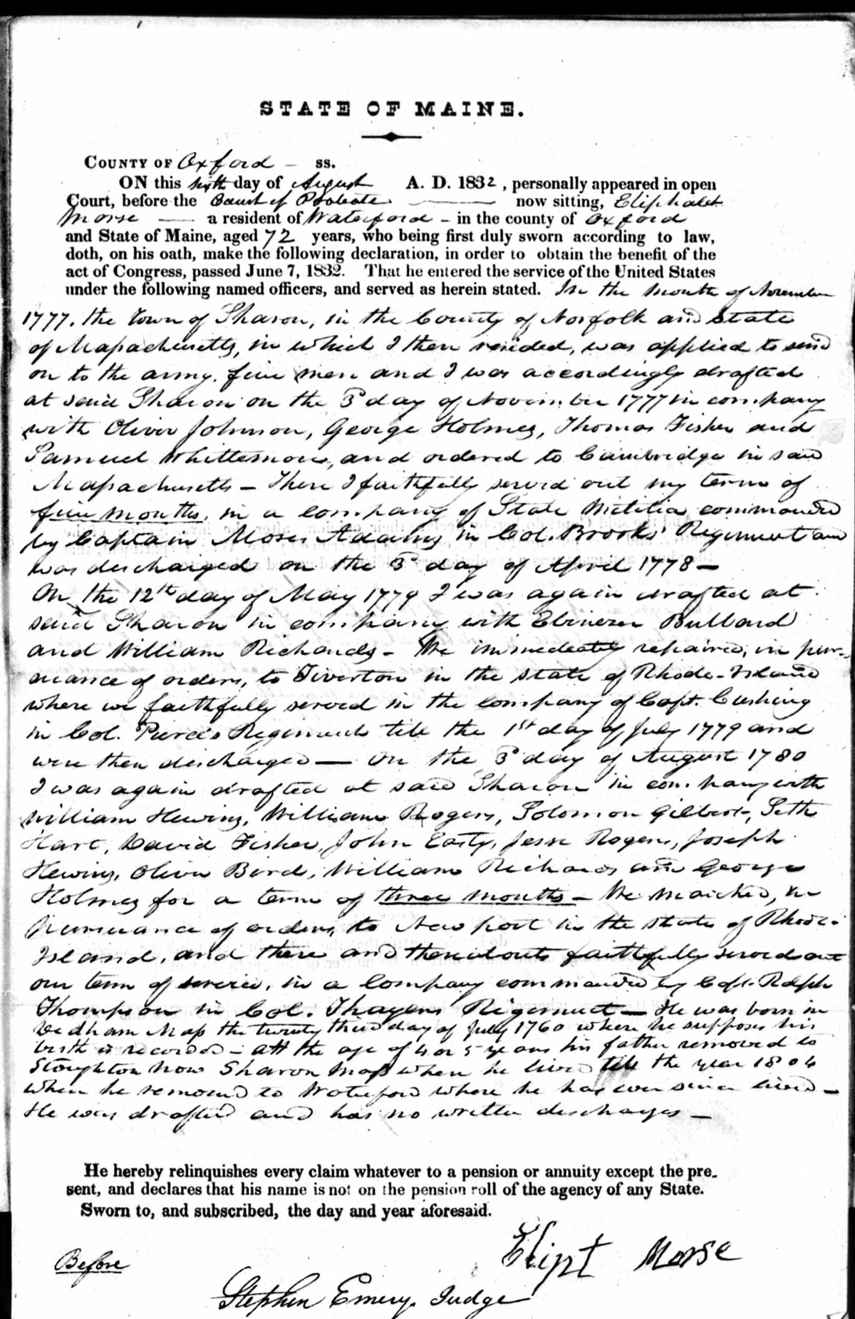 Description of Eliphalet Morse's Revolutionary War Service - Part 1
