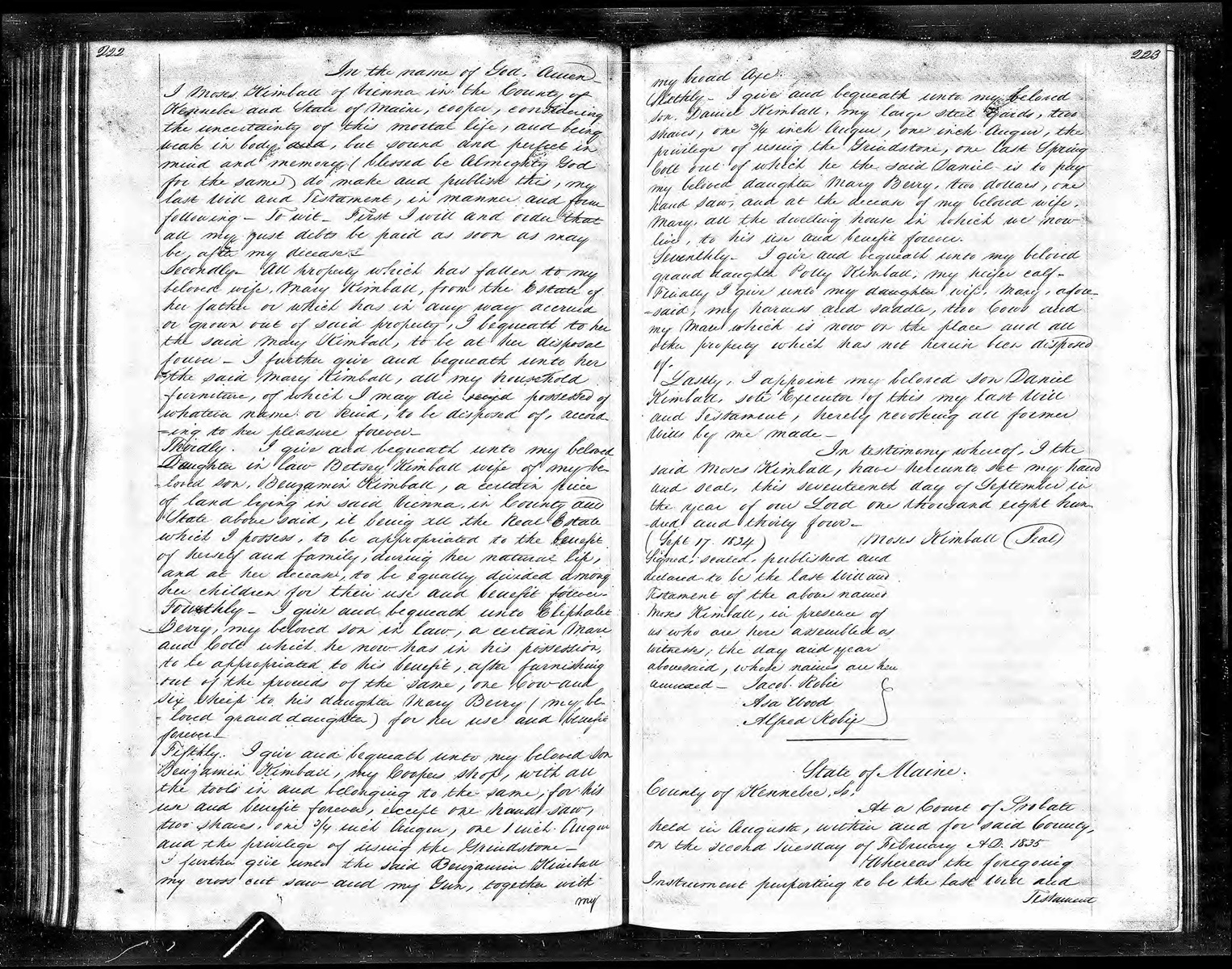 Probate Record of Moses Kimball