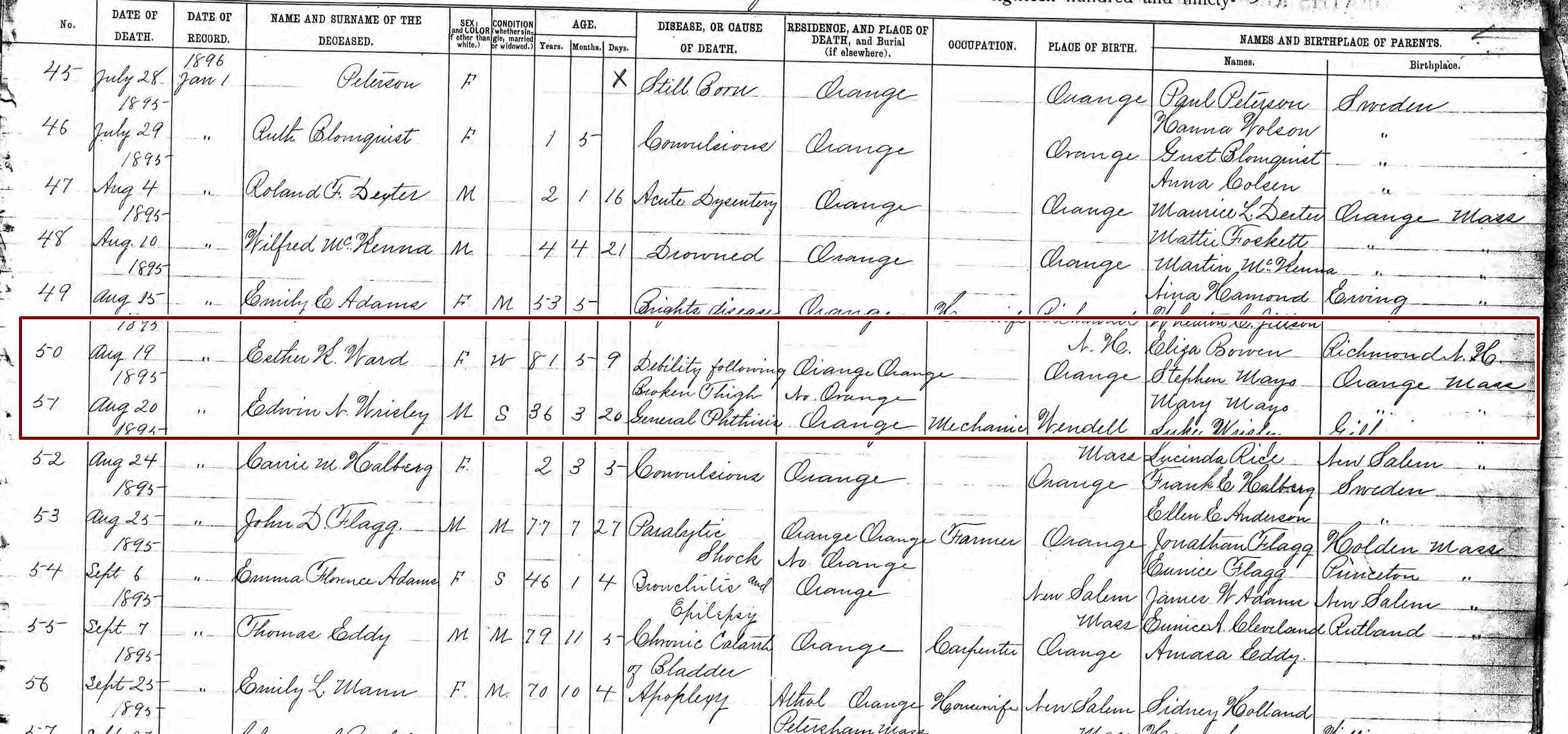 Death Record of Esther K. Ward