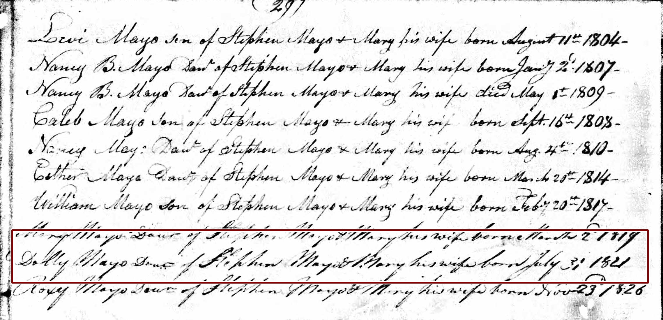 Birth Record of Dolly Mayo
