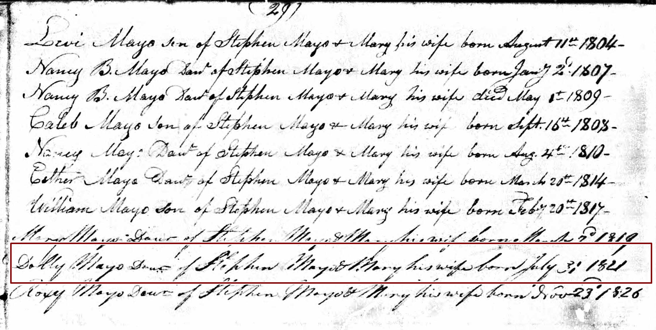 Birth Record of Roxy Mayo