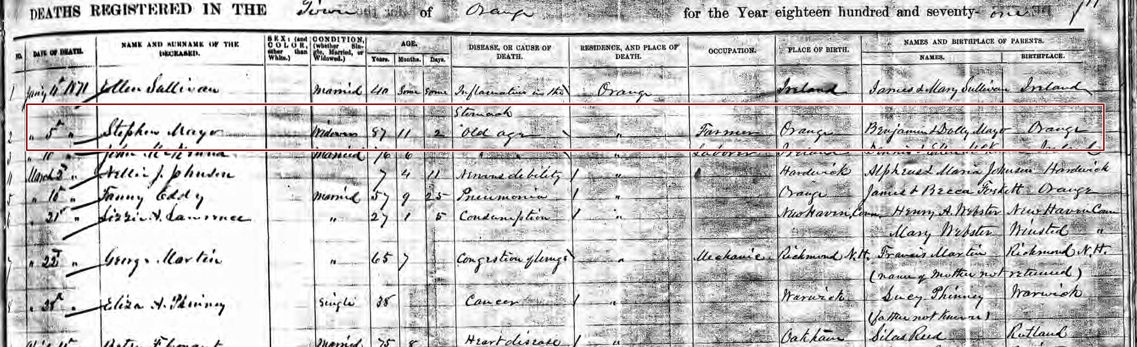 Death Record of Stephen Mayo