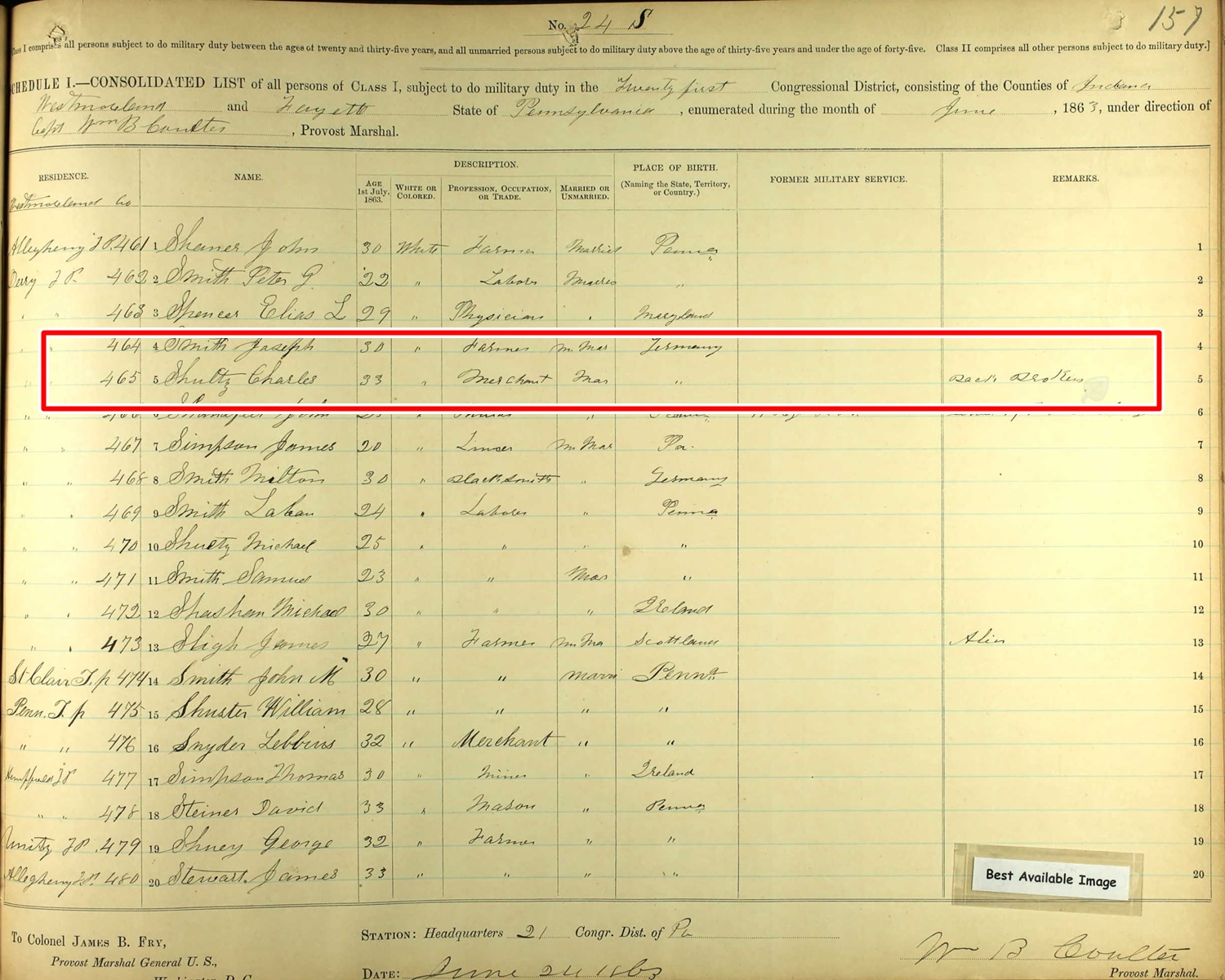 Draft Registration of Charles Schultz