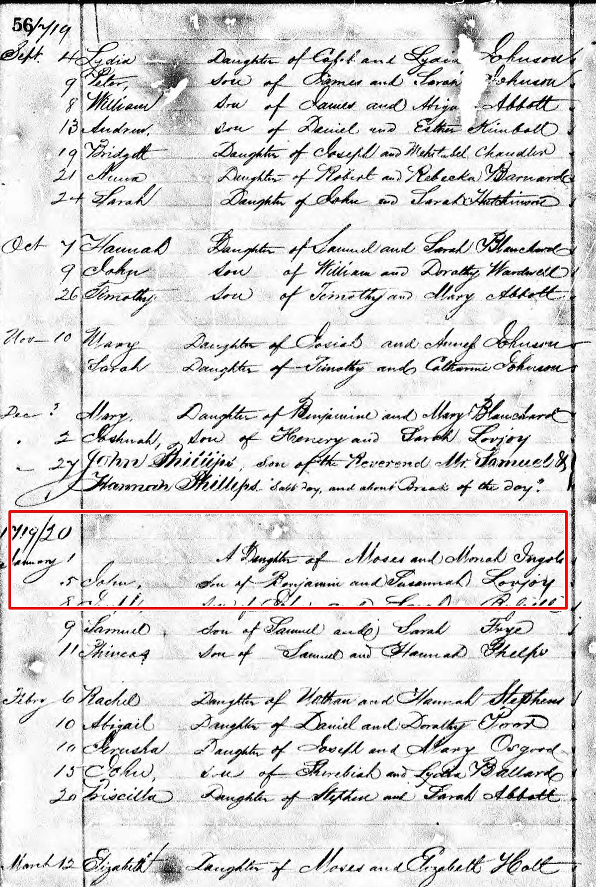 Birth Record of John Lovejoy