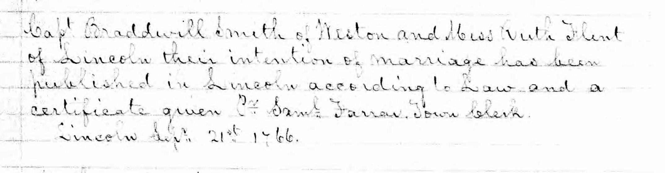Marriage Intentions of Mrs. Ruth Flint and Captian Biddwell Smith