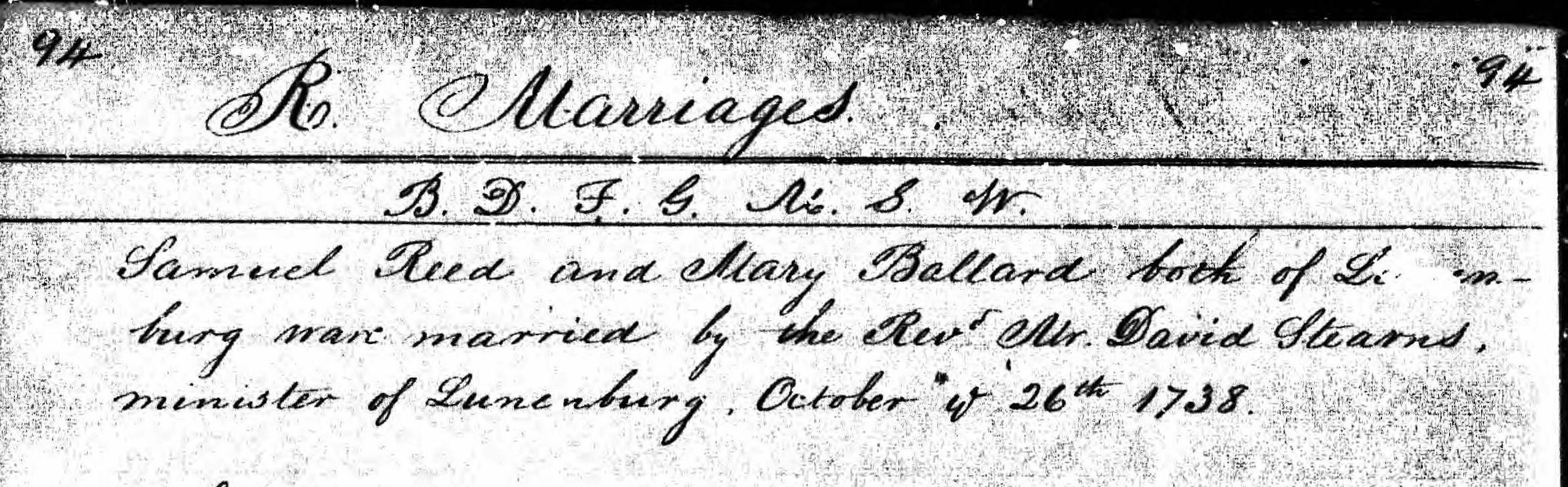 Marriage Record of Mary Bullard and Samuel Reed