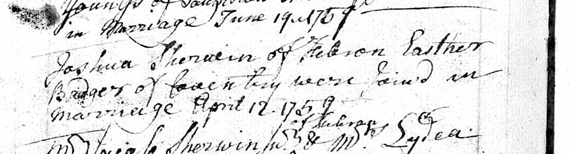 Marriage Record of Esther Bridger and Joshua Sherwin