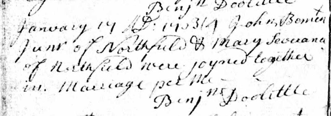 Marriage Record of Mary Severance and John Bement