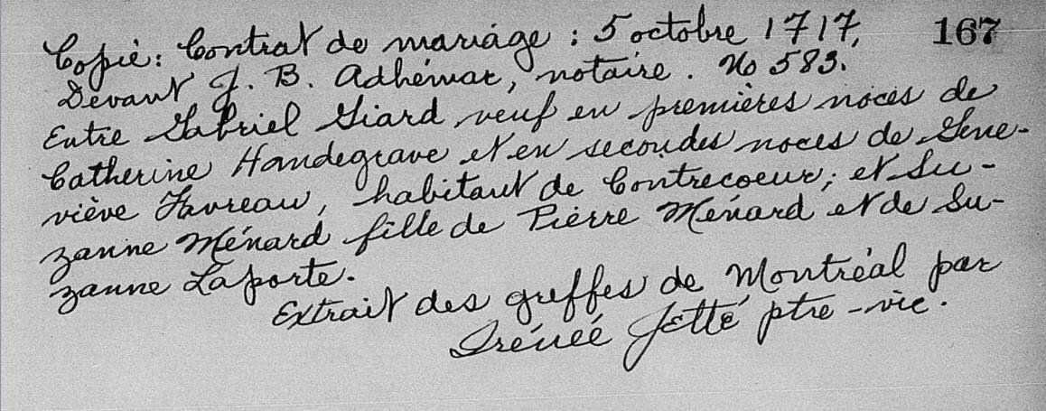 Marriage Contract of Gabriel Giard and Suzanne Ménard