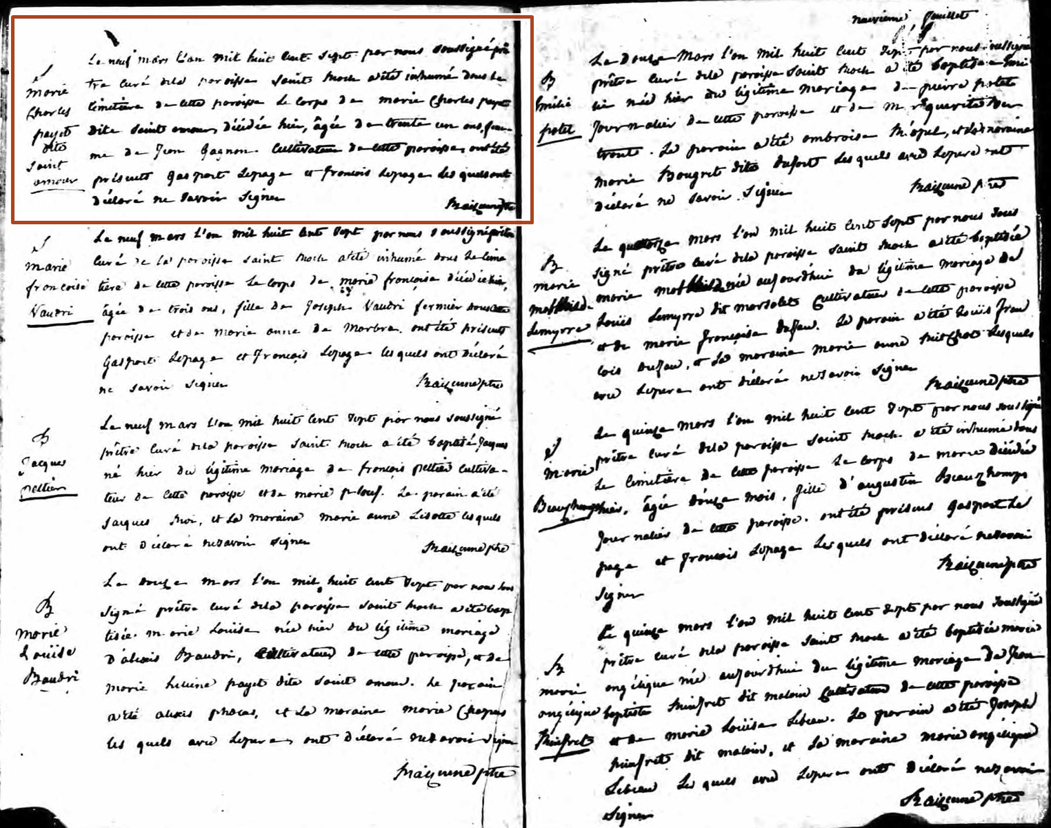 Burial Record of Marie-Charlotte Payet dite Saint-Amour