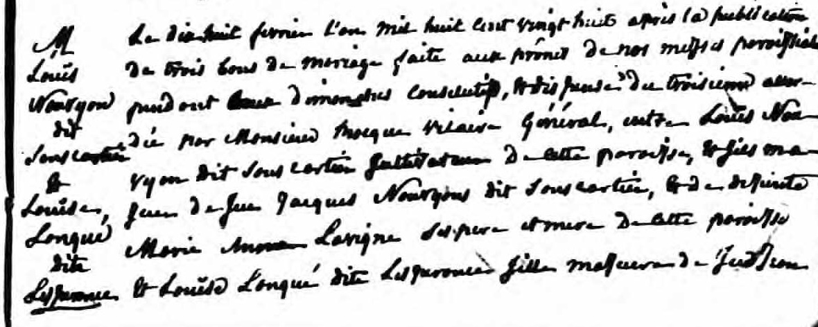 Marriage Record of Louise Langue and Louis Nourgon