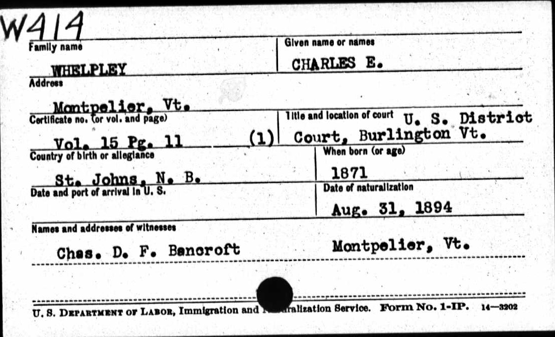 Naturalization Record of Charles E. Whelpley