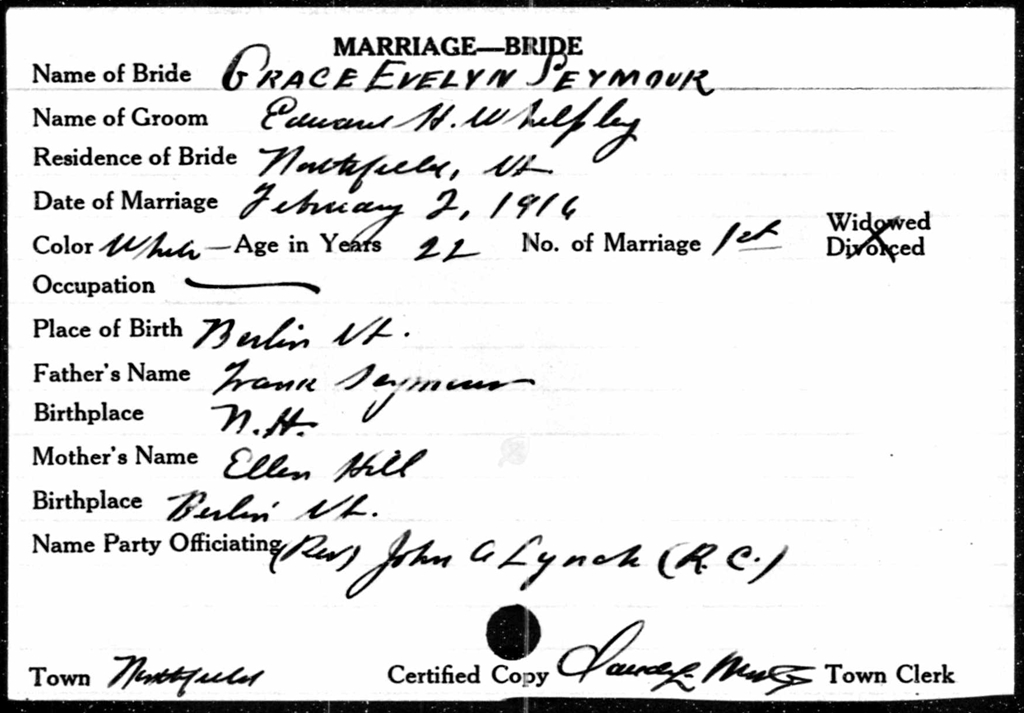 Bride Card of Grace Seymour