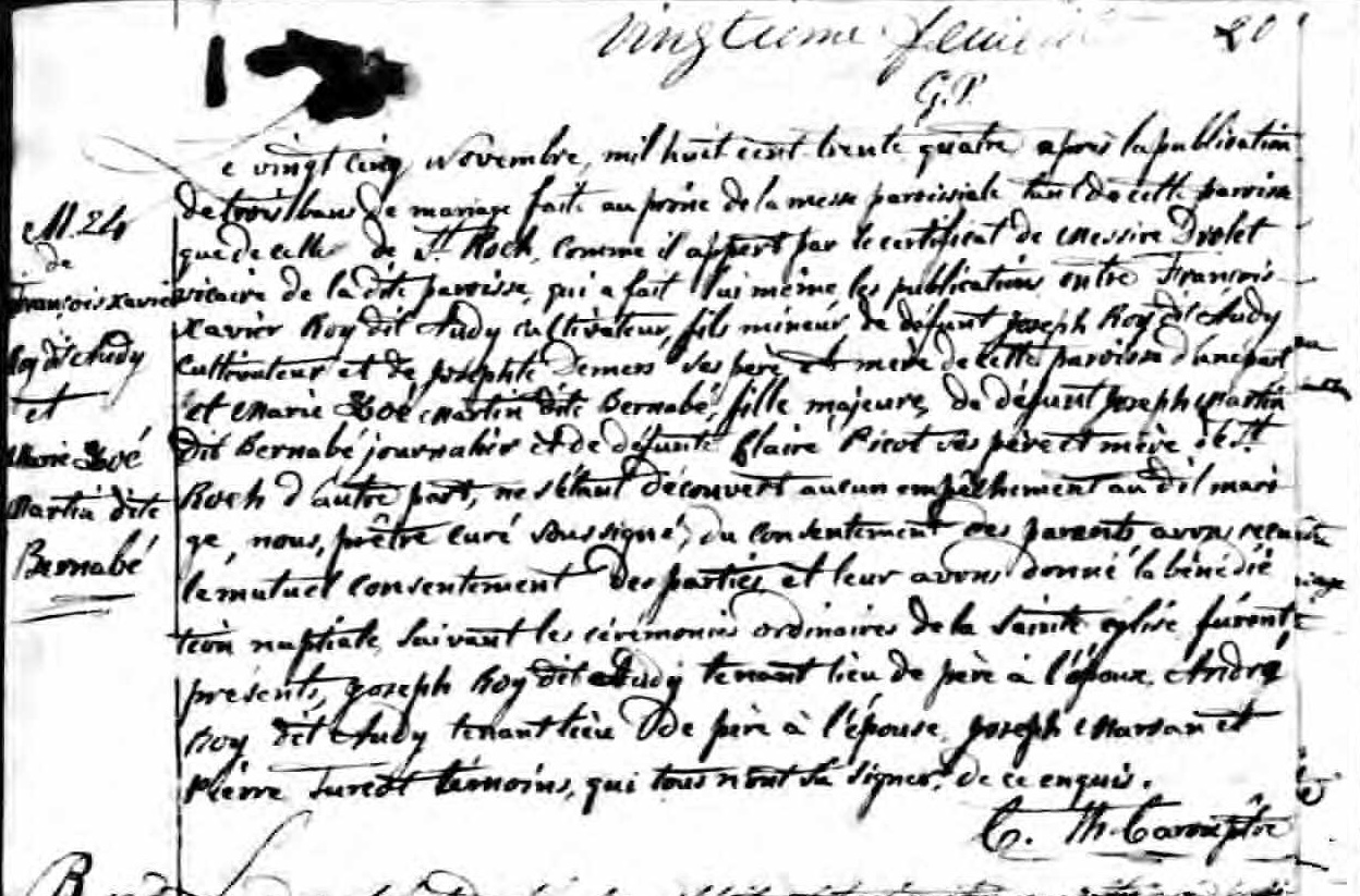 Marriage Record of François-Xavier Roy and Marie-Zoé Martin