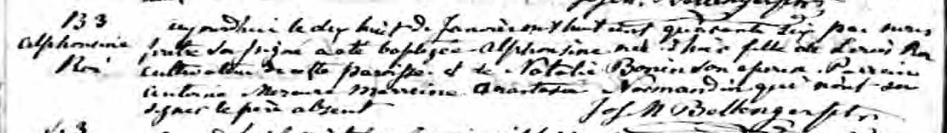 Christening Record of Alphonsine Roi