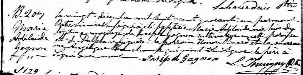 Christening Record of Marie-Adelaide Gagnon