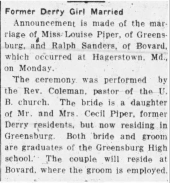 Wedding Annoncement of the Piper-Sanders Marriage