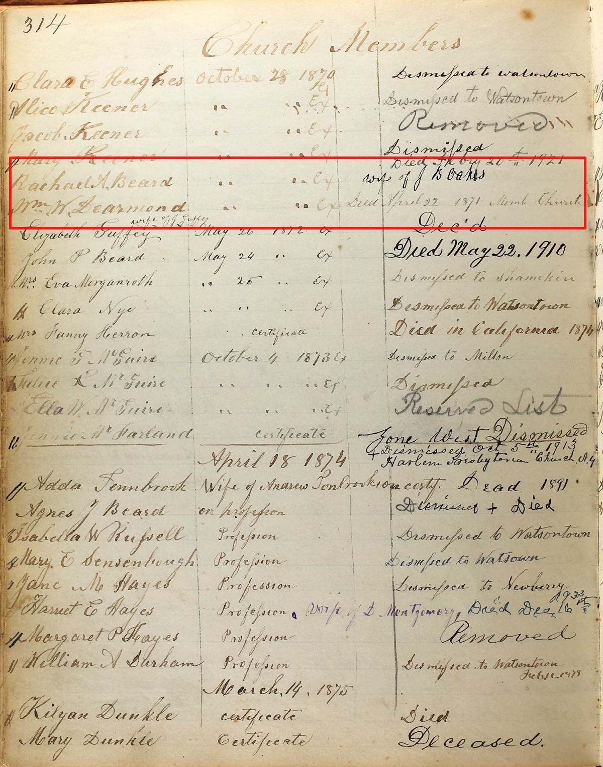 Burial Record of Rachael Beard
