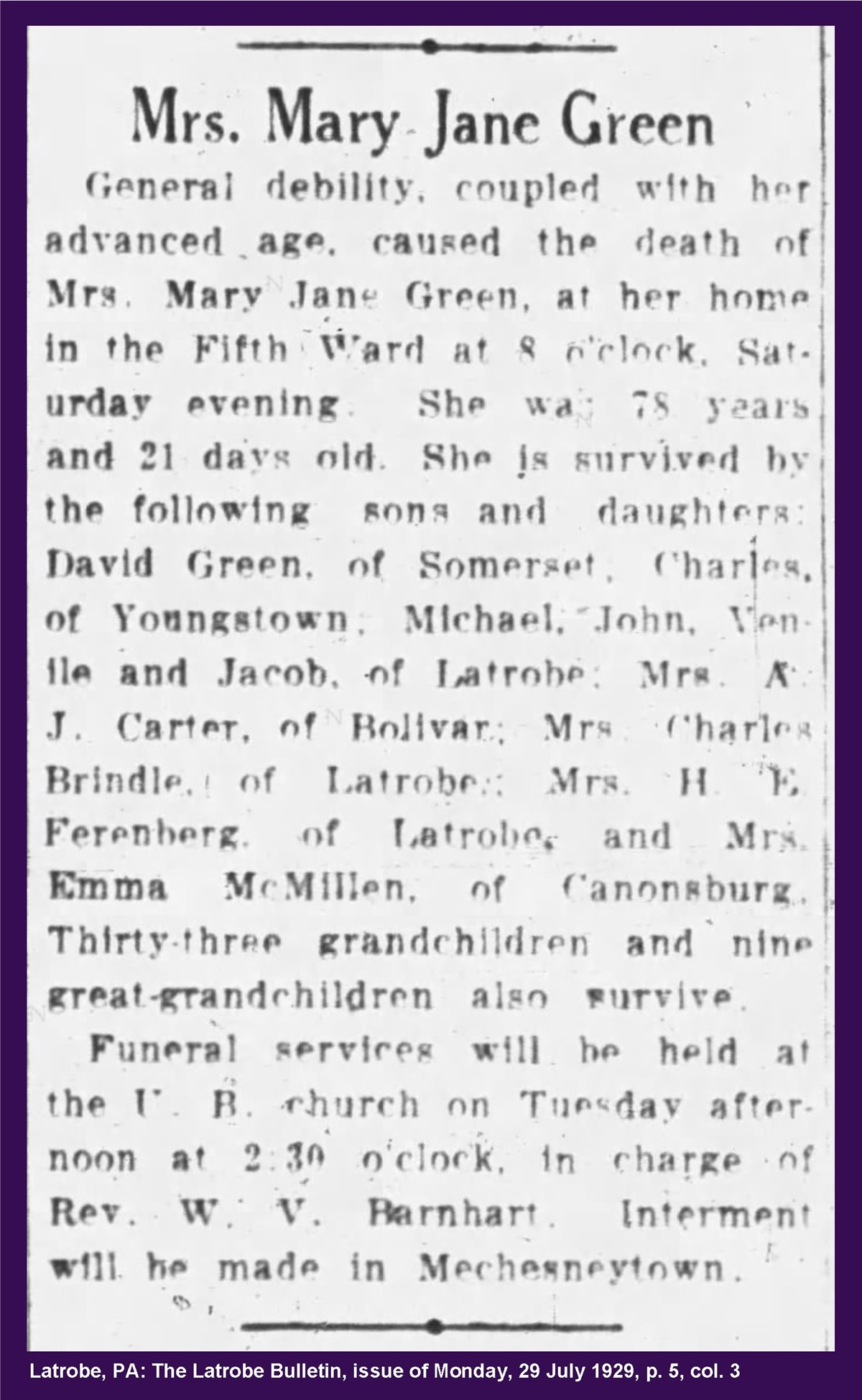 Obituary of Mary Jane Green