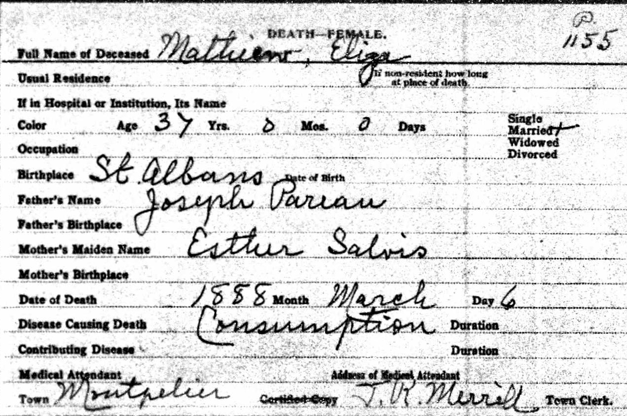 Death Record of Eliza Matthews