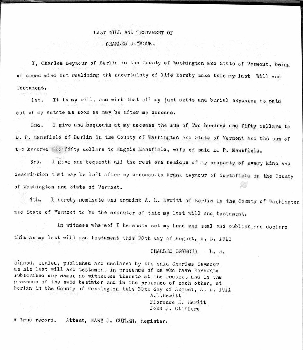Will of Charles Seymour