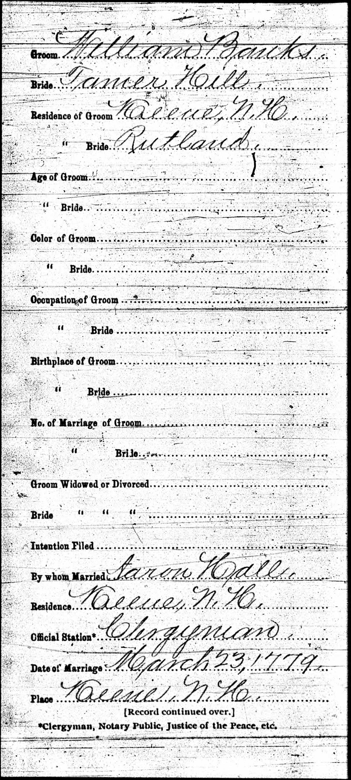 Marriage Record of Tamer Hill and William Banks