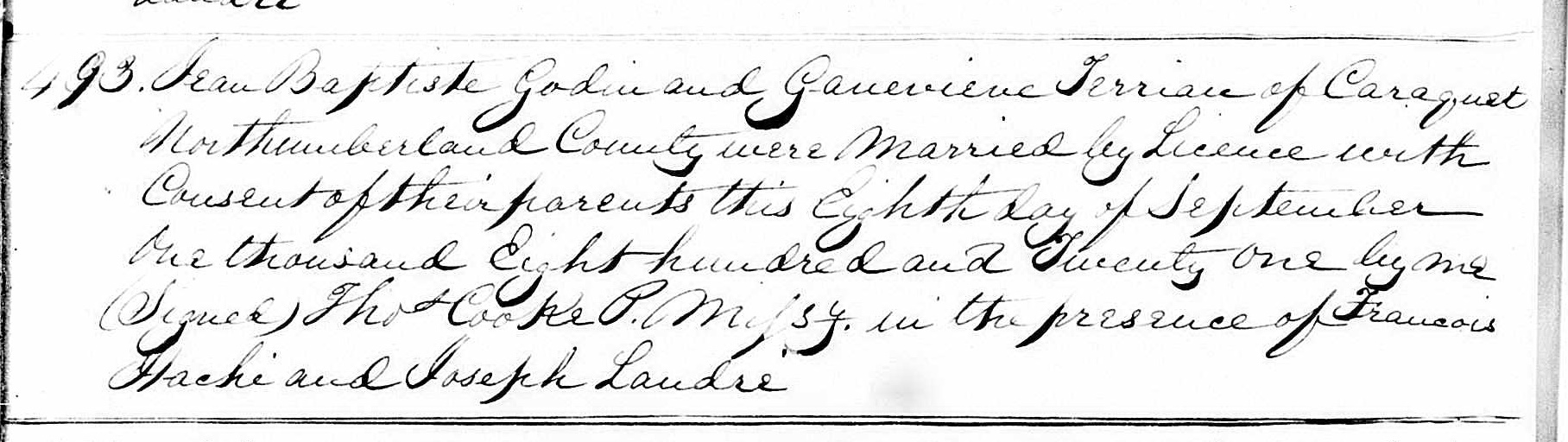 Marriage Record of Genevève Terrian and Jea-Baptiste Godin