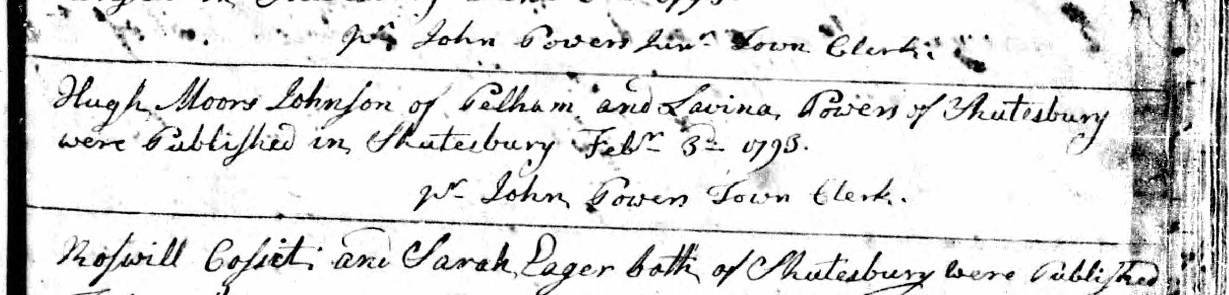 Marriage Intentions of Levina Powers and Hugh M. Johnson