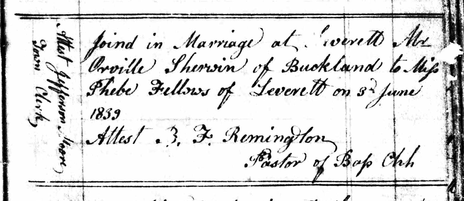 Marriage Record of Phebe Fellows and Orville Sherwin