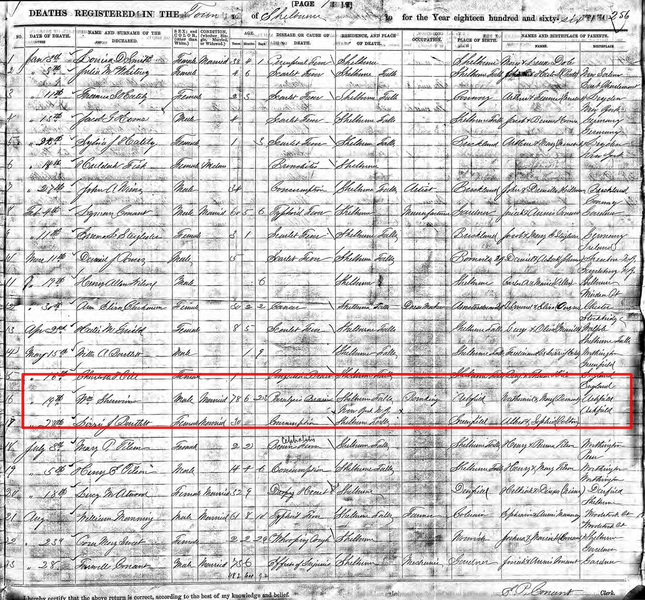Death Record of William Sherwin
