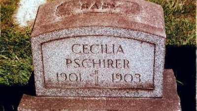 Cecelia Pschirer was born in 1901. She was the daughter of Frank Frederick Pschirer and Mary Anna Boehm. Cecelia Pschirer died in 1903. She was buried at Saint Anthony Cemetery, Etna, Allegheny County, Pennsylvania.