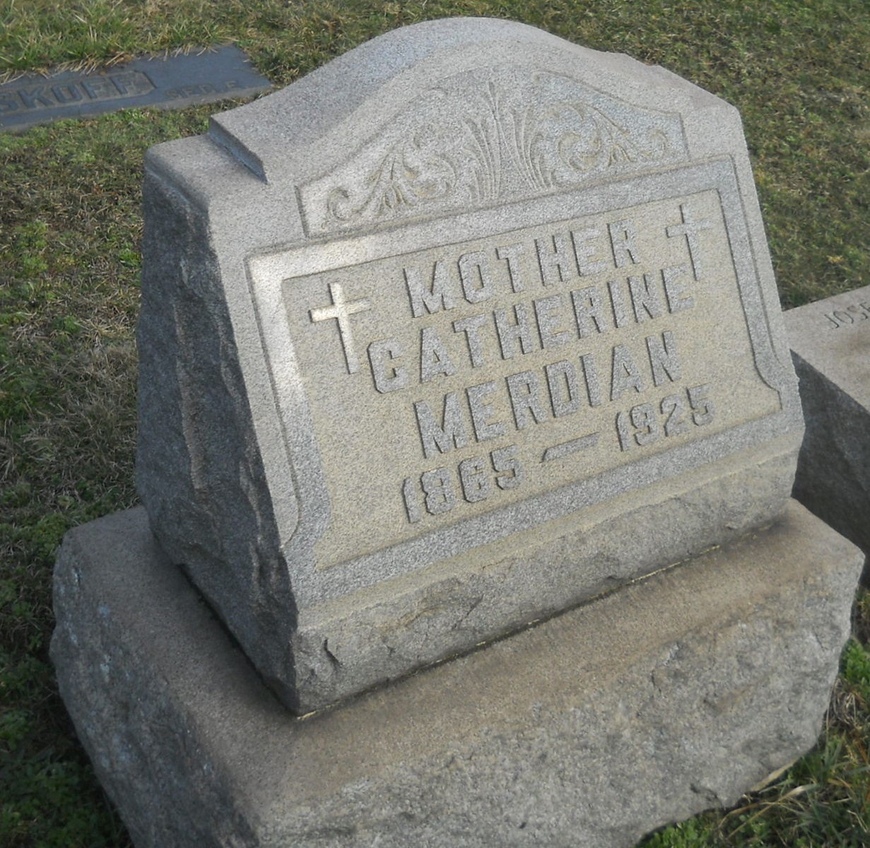 Catherine Glatz married Adam Merdian, son of Conrad Merdian and Apollonia Wolff, in 1883.