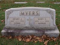Henry J. Myers was born on 28 November 1865 at Latrobe, Westmoreland County, Pennsylvania. He was a twin. He was the son of Lucas Myers and Mary Huffman. Henry, age 4, appeared on the US Census of 1870 living at Unity Township, Westmoreland County, Pennsylvania,in the household of his parents, Luke and Mary Myers.1 Henry, age 16, appeared on the US Census of 1880 living at Unity Township, Westmoreland County, Pennsylvania,in the household of his parents, Luke and Mary Myers.2 According to the Federal Census in 1880, Henry was a farm laborer.2