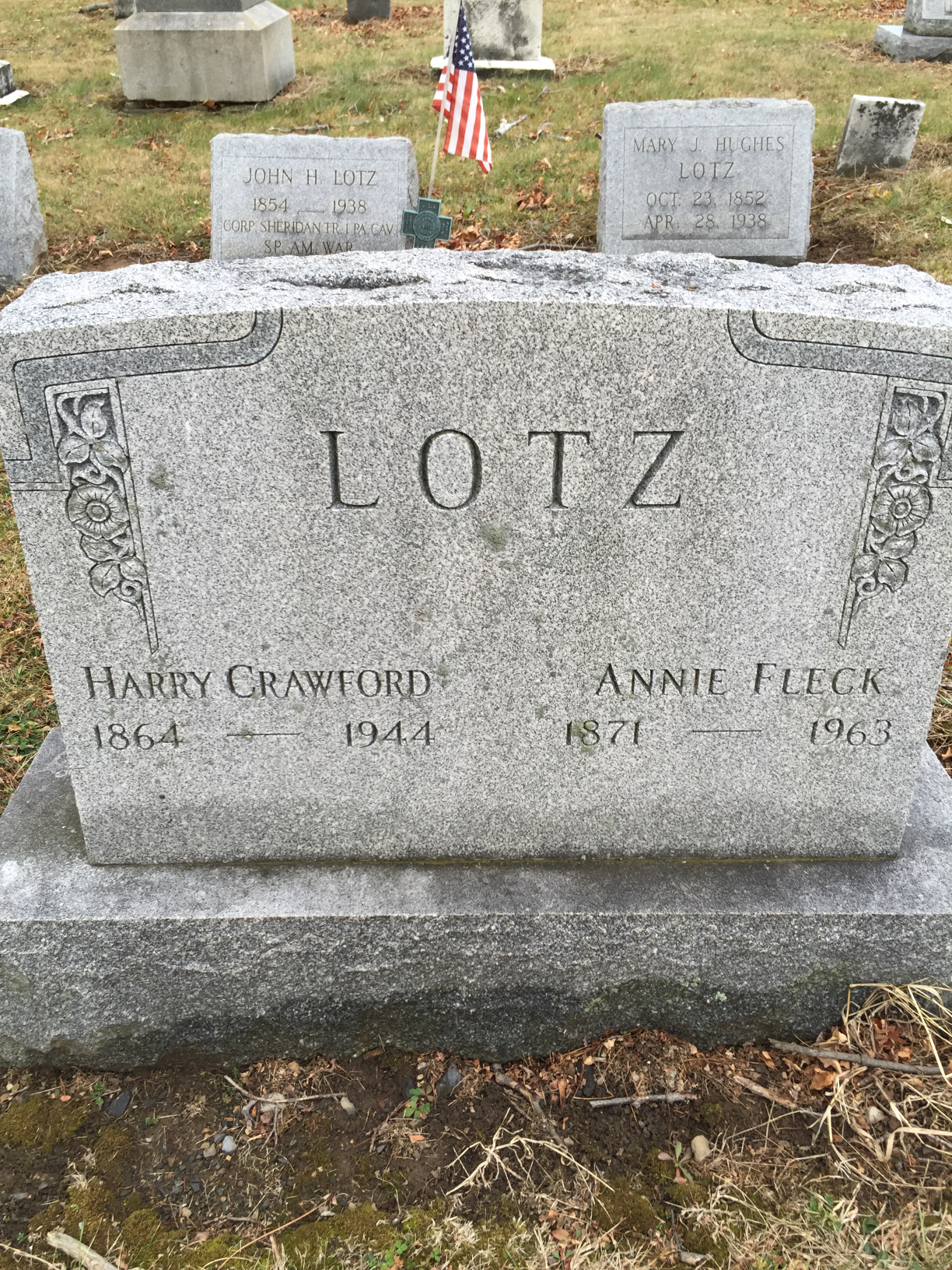 Harry Crawford Lotz, age 35, married Anne Rebecca Fleck, age 28 , daughter of Thomas M. Fleck and Sarah Stoner, on 15 March 1899.