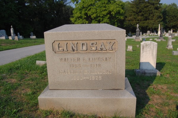Walter E. Lindsay died on 27 January 1918 at Hollidaysburg, Blair County, Pennsylvania, at age 61 from a erebral hemmorahage. He was buried on 30 January 1918 at Hollidaysburg Presbyterian Cemetery, Hollidaysburg, Blair County, Pennsylvania.