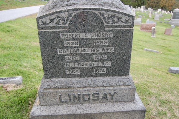 M. J. Lindsay was born in 1865. She was the daughter of Robert Garber Lindsay and Catherine Gardner. M. J. Lindsay died in 1874.