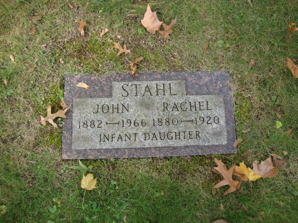 John E. Stahl married Rachel Green, age 23 , daughter of David E. Green and Mary Jane Clark, on 10 December 1903 at Indiana County, Pennsylvania.