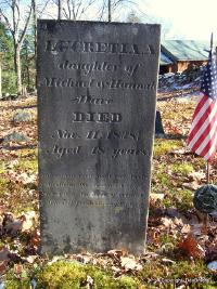 Lucretia Allen Ware was born in 1820 at Buckland, Massachusetts.1,2,3 She was the daughter of Michael Ware and Hannah Kemp.1 Lucretia Allen Ware died on 11 November 1838 at Buckland, Massachusetts.1,2,4,5,3 Lucretia was buried at Old East Buckland Cemetery, Buckland, Massachusetts.4