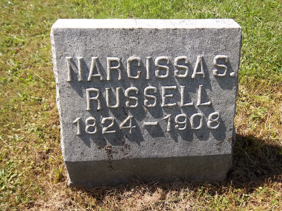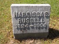 Narcissa S. Cole married George H. Russell, son of Jesse Russell and Annis Foster, in 1857.4 Narcissa, age 35 years, and George, age 43 years, appeared on the US Census of 1860 at Sangerfield, Oneida County, New York.2 Narcissa, age 45 years, and George, age 53 years, appeared on the US Census of 1870 at Huron, Wayne County, New York.5 Narcissa, age 45 years, and George, age 53 years, appeared on the US Census of 1870 at Huron, Wayne County, New York. Narcissa, age 55 years, and George, age 63 years, appeared on the US Census of 1880 at Huron, Wayne County, New York.6 Narcissa, age 75 years, and George, age 83 years, appeared on the US Census of 1900.4 Narcissa S. Cole died on 24 December 1908 at age 84.3,7,8 She was buried at Glenside Cemetery, Wolcott, Wayne County, New York.3,7