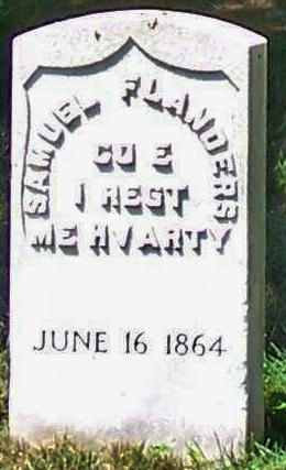 He enlisted, on 21 Augsut 1862, in Capt. Whiting S. Clark's Company E, Col. Danield Chaplin's First Regiment Heavy Artillery, Maine Volunteers.1 Private Samuel Webb Flanders died on 15 June 1864 at Washington, District of Columbia, at age 51 from wounds received at the Battle of Fredericksburg Pike.1,4 He was buried at Shirley Cemetery, Shirley Mills, Maine.1,4