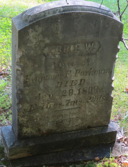 Abbie W. Berry, age 12, married Benjamin Fowler Parkman, age 24 , son of John Parkman and Lydia Pratt, on 16 October 1834 at Palmyra, Maine.