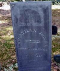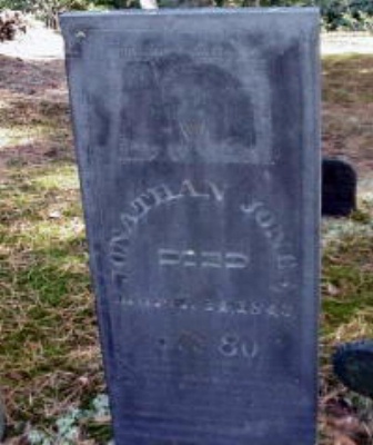 Jonathan Jones died on 14 March 1843 at Orange, Massachusetts, at age 80. He was buried at Jones Cemetery, Orange, Massachusetts. Jonathan's epitaph reads: