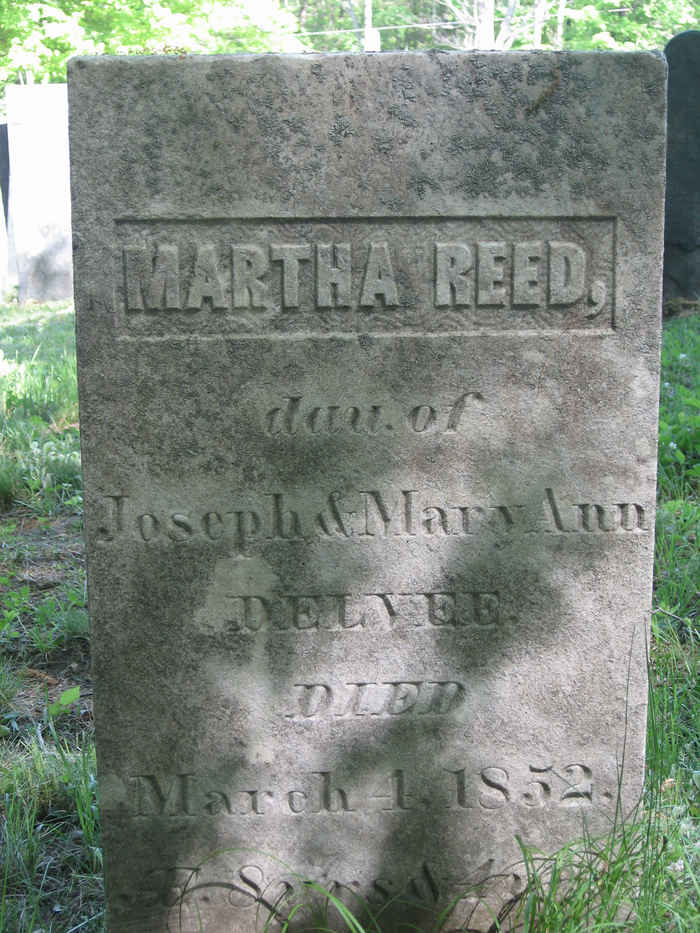 She was the daughter of Joseph Delvey and Mary Wheaton.1 Martha Reed Delveyappeared on the US Census of 1850 in the household of Emerancy L. Fisher at Warwick, Massachusetts.3 Martha Reed Delvey died on 4 March 1852 at Warwick, Massachusetts, at age 8 from an inflamation of the heart.1,4