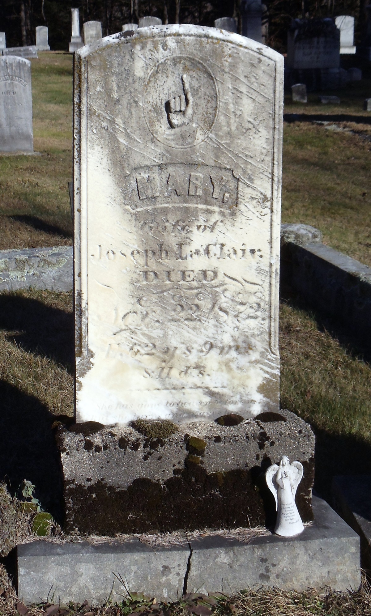 Mary Holt, age 23, married Joseph LaClair on 11 August 1833 at Berlin, Vermont.3 Mary, age 49 years, and Joseph, age 60 years, appeared on the US Census of 1860 at Berlin, Vermont.4 Mary, age 59 years, and Joseph, age 70 years, appeared on the US Census of 1870 at Berlin, Vermont.1 Mary Holt died on 22 November 1872 at Berlin, Vermont, at age 62.2 She was buried at West Berlin Cemetery, West Berlin, Vermont.2