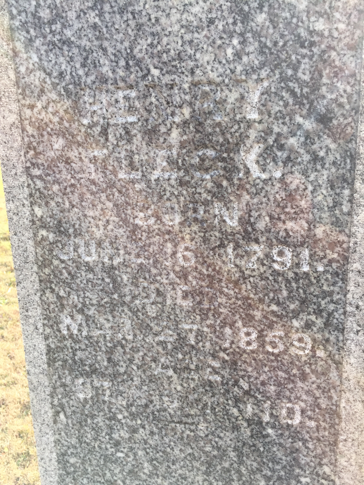 Henry Fleck died on 27 March 1859 at age 67. He was buried at Saint Johns Lutheran Cemetery, Tyrone Township, Blair County, Pennsylvania.